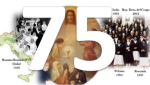 Ogni anno in questa circostanza viene celebrata una Messa Solenne nella chiesa della Casa Madre in Bassano Romano (VT). Ma quest’anno in modo particolare, celebreremo con gratitudine al Signore e alla Madonna Assunta in Cielo i 75° anniversario di nascita della nostra Famiglia Religiosa. Il grande grazie lo diciamo al Padre, con i versetti dell’Inno a Lui dedicato. “Grazie o Padre il tuo spirito orante noi sentiamo…”